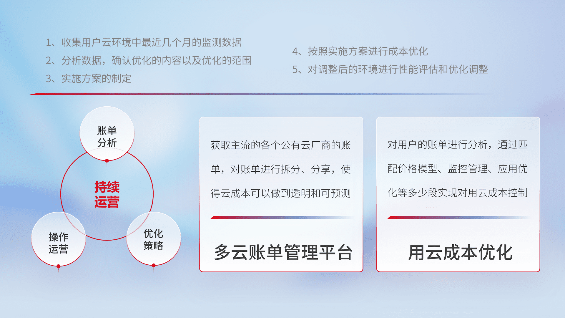 监控业务系统资源开销,,,对资源的消耗精确计量,,,,实现费用的透明化管理,,,,不断提升资源使用率,,调整资源购买方式,,,降低资源费用成本,,,,用云成本可预测、、、、用云费用可优化,,云资源配额有据可依。。